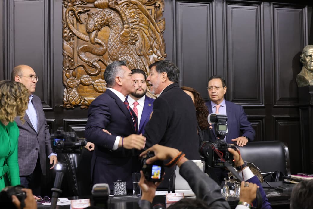 En ese contexto, el senador de Campeche, Alejandro Moreno, subió a la Mesa Directiva para dirigirse a Fernández Noroña, también presidente del Senado.