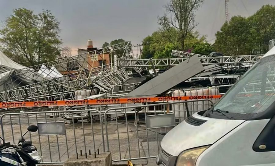 México, 8 de mayo.- La alcaldía Gustavo A. Madero fue escenario de un accidente cuando colapsó parte de la estructura del escenario principal instalado en su explanada.