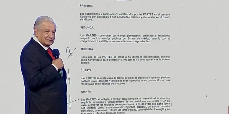 México, 11 de enero de 2024.- El presidente Andrés Manuel López Obrador, calificó como un “acuerdo mafioso” el convenio celebrado entre el PRI y el PAN para la elección de Coahuila de 2023, en el que se reparten cargos públicos y de elección popular.