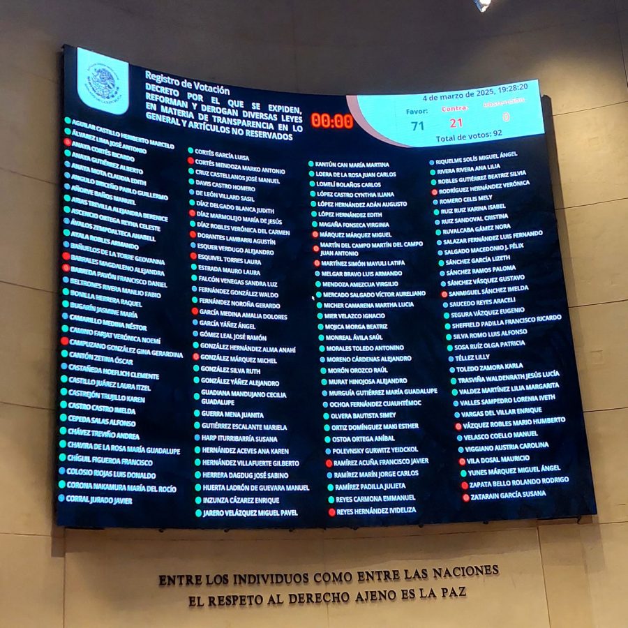 México, 4 de marzo.- Con 71 votos en pro y 21 en contra, el pleno del Senado reformas en materia de transparencia.