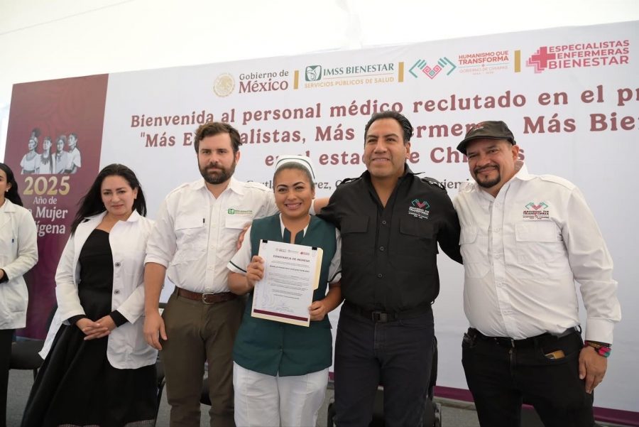Tuxtla Gutiérrez, Chiapas, 2 de noviembre.— Con la incorporación de más de 240 profesionales de la salud, el gobernador Eduardo Ramírez Aguilar puso en marcha el programa “Más Especialistas, Más Enfermeras, Más Bienestar”, una estrategia nacional del IMSS-Bienestar que busca fortalecer los servicios médicos en las entidades con mayor necesidad de atención.