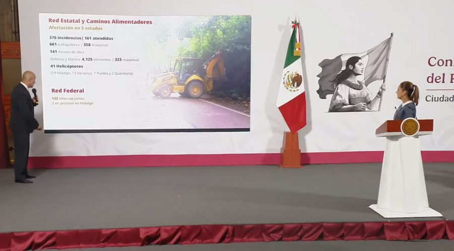 El titular de la SICT señaló que Hidalgo concentra el mayor número de incidencias, con 244 afectaciones en caminos, 22 puentes dañados y 111 comunidades incomunicadas, aunque esta cifra representa una reducción de 73 localidades respecto al día anterior.