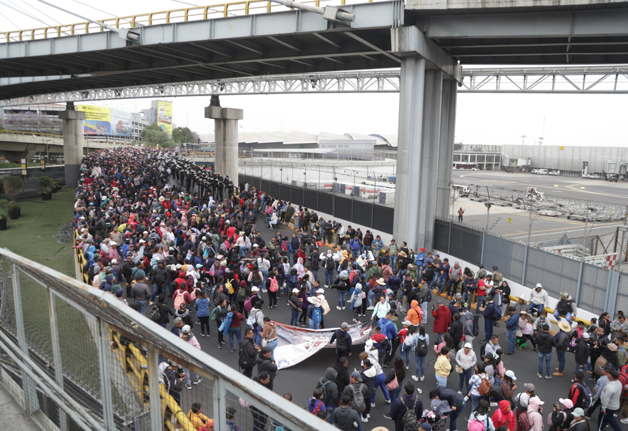 México, 20 de marzo.- Integrantes de la Coordinadora Nacional de Trabajadores de la Educación (CNTE), bloquearon los accesos a la Terminal 1 y 2 del Aeropuerto Internacional de la Ciudad de México (AICM), como parte de la «Jornada de Lucha de 72 Horas» en protesta contra la Ley del ISSSTE de 2007.