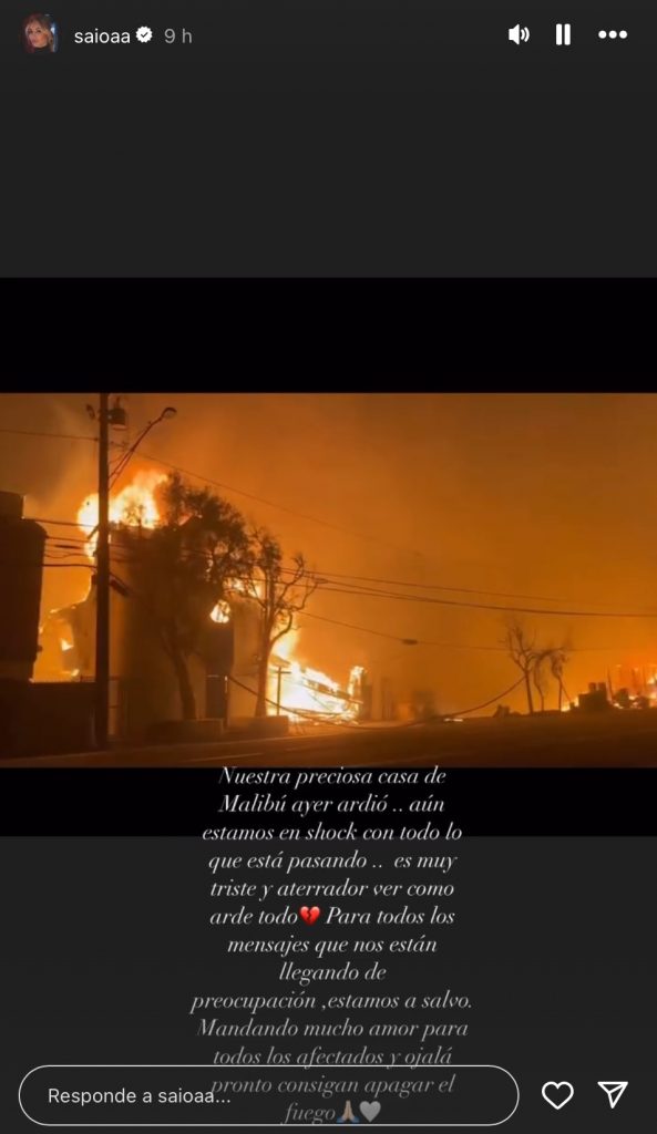 “Nuestra preciosa casa de Malibú ayer ardió… aún estamos en shock con todo lo que está pasando… es muy triste y aterrador ver como arde todo.