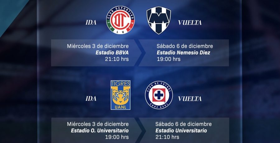 México, 1 de diciembre.- La Liga MX confirmó este lunes los horarios y fechas de los partidos correspondientes a las semifinales del torneo Apertura 2025, donde Toluca, Rayados, Tigres y Cruz Azul buscarán su pase a la final.