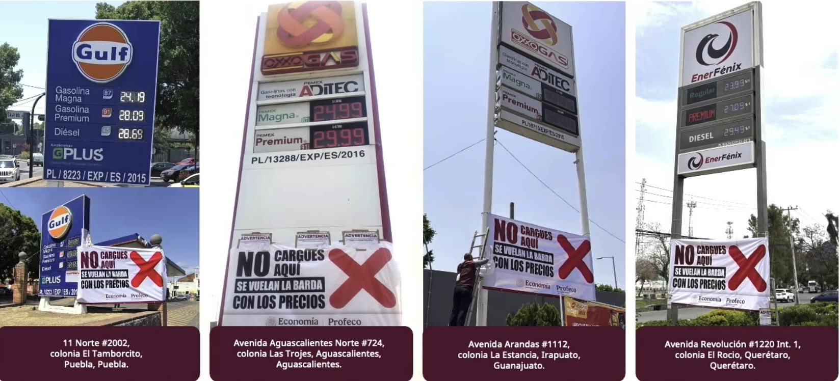 Detalló que, de 44 inspecciones realizadas recientemente, en 14 casos se colocaron lonas para señalar a estaciones con precios elevados.
