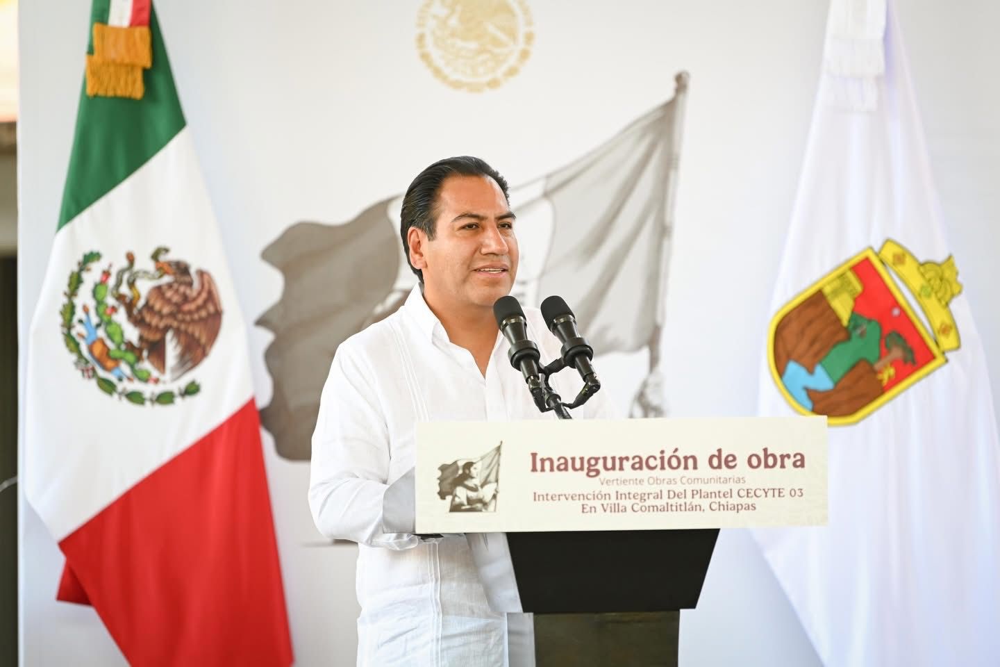 El gobernador Eduardo Ramírez Aguilar inauguró obras de infraestructura educativa en los planteles 06 Acapetahua y 03 Villa Comaltitlán del Colegio de Estudios Científicos y Tecnológicos de Chiapas, realizadas a través de la Vertiente Obras Comunitarias, con una inversión cercana a los 10 millones de pesos.