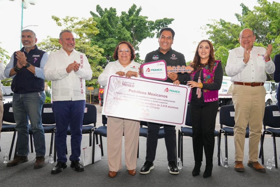Tuxtla Gutiérrez, Chiapas, 8 de octubre.– El gobernador Eduardo Ramírez Aguilar reconoció a Petróleos Mexicanos (Pemex) por su compromiso social, patriotismo y responsabilidad con el desarrollo del país, durante la entrega de donativos por más de 100 millones de pesos destinados a fortalecer proyectos de infraestructura, salud, educación y seguridad en municipios de la región petrolera de Chiapas.