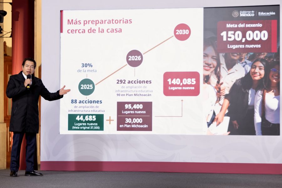 Delgado explicó que la meta sexenal se amplió de 120 mil a 150 mil nuevos lugares, luego de que la demanda superó las proyecciones iniciales y las nuevas preparatorias resultaron “un éxito”.