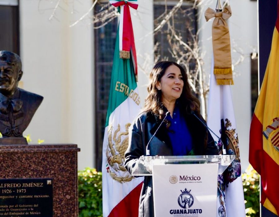 Madrid, España, 19 de enero.– En el marco de una gira de trabajo internacional previa a la Feria Internacional de Turismo (FITUR), la gobernadora de Guanajuato, Libia Dennise García Muñoz Ledo, anunció la realización de un homenaje especial a José Alfredo Jiménez desde la Embajada de México en Madrid, con motivo del centenario del natalicio del icónico compositor guanajuatense.