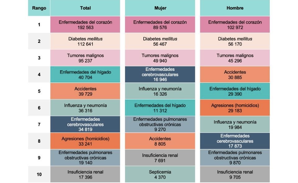 1. Enfermedades del corazón, con 192 mil 563 defunciones.