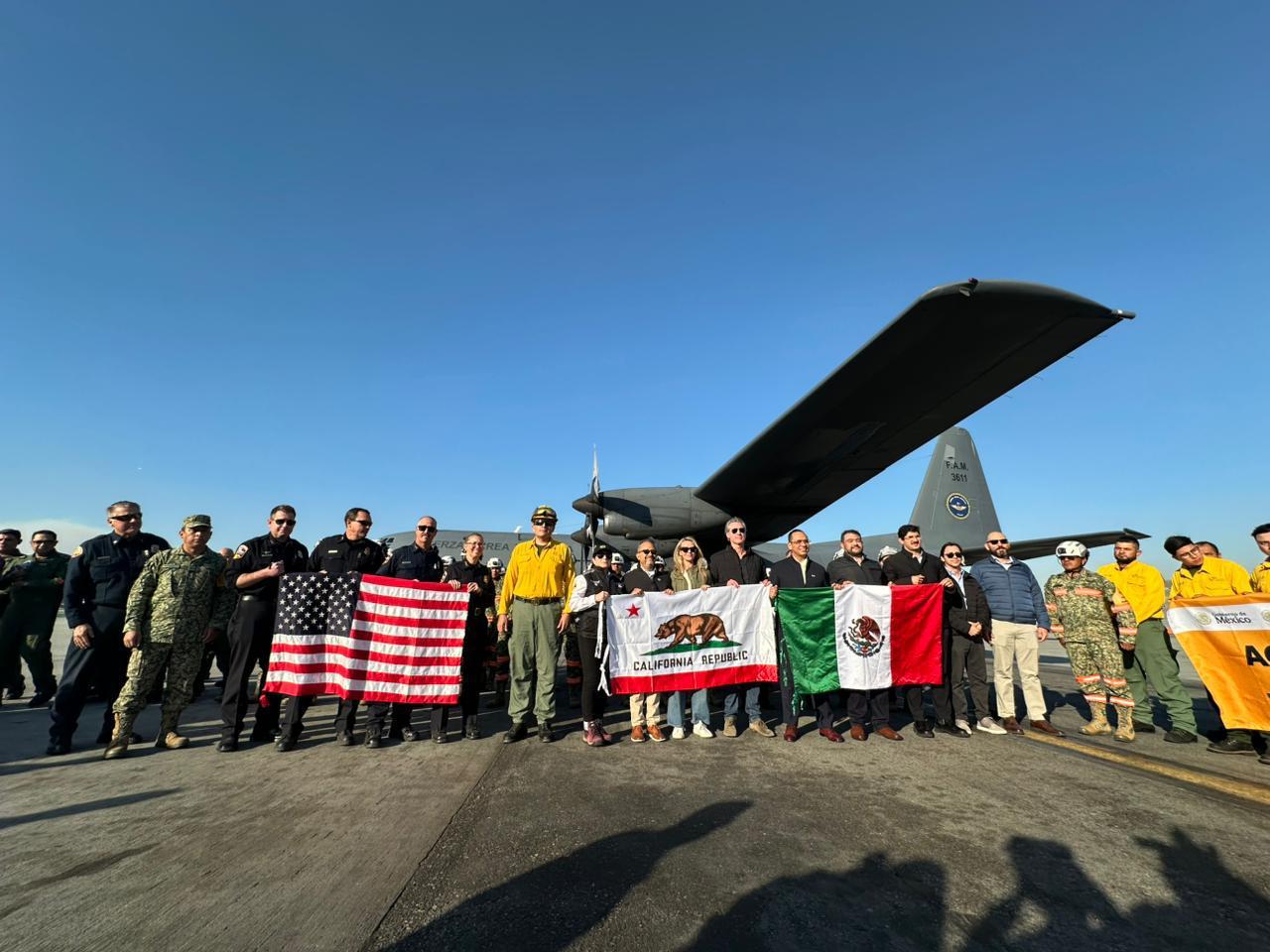 Los Ángeles, California, 11 de enero.- La delegación mexicana que se sumará a las labores de extinción de los incendios forestales en esta ciudad, arribó este sábado por la tarde a California.