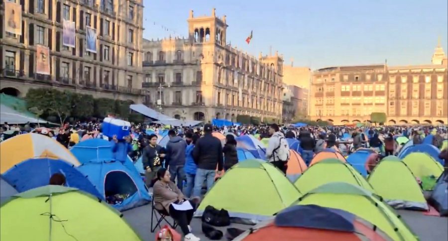 Desde las primeras horas de este miércoles llegaron decenas de miembros de la CNTE, para instalar casas de campaña, carpas y lonas.