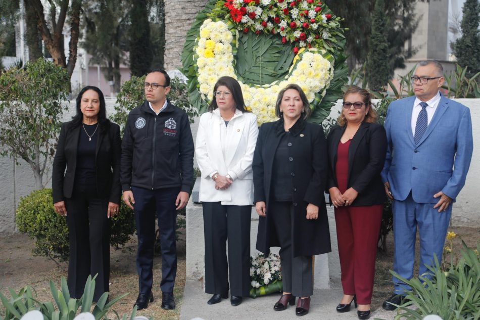 Tecámac, Estado de México, 5 de febrero.— La senadora por el Estado de México, Mariela Gutiérrez Escalante, encabezó un homenaje al compositor y músico tecamaquense Felipe Villanueva, al conmemorarse el 164 aniversario de su natalicio, acto con el que se refrendó el reconocimiento a uno de los personajes culturales más emblemáticos del municipio.
