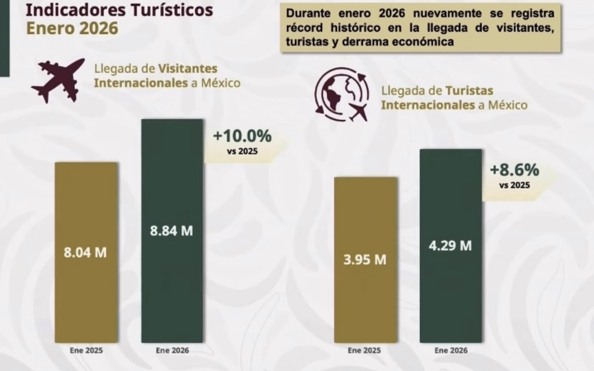 Tan sólo en enero de 2026, el número de visitantes extranjeros aumentó 10 por ciento en comparación con el mismo mes de 2025.