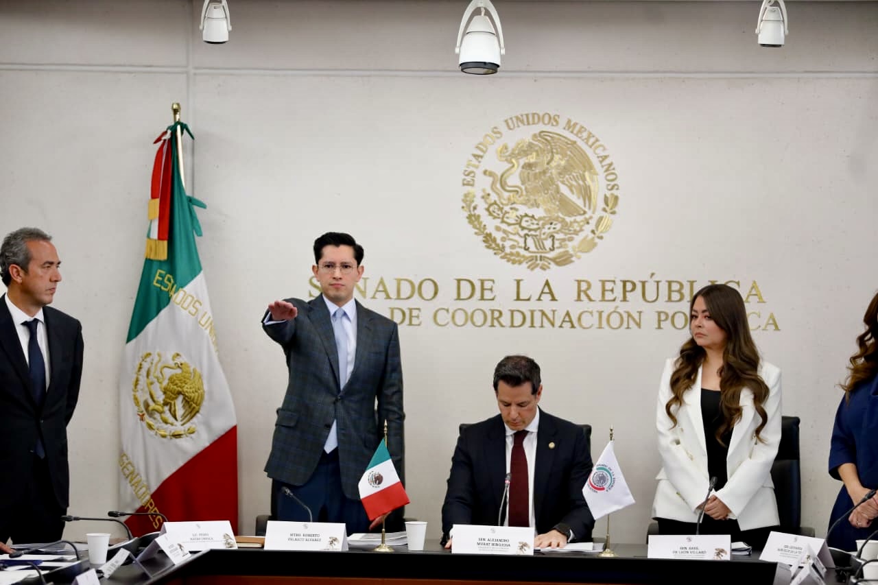 Ante legisladores encabezados por Alejandro Murat, el funcionario agradeció la confianza de la presidenta Claudia Sheinbaum y reconoció el trabajo de su antecesor, al tiempo que planteó los ejes que guiarían su gestión en un contexto internacional que calificó como “en reconfiguración”.