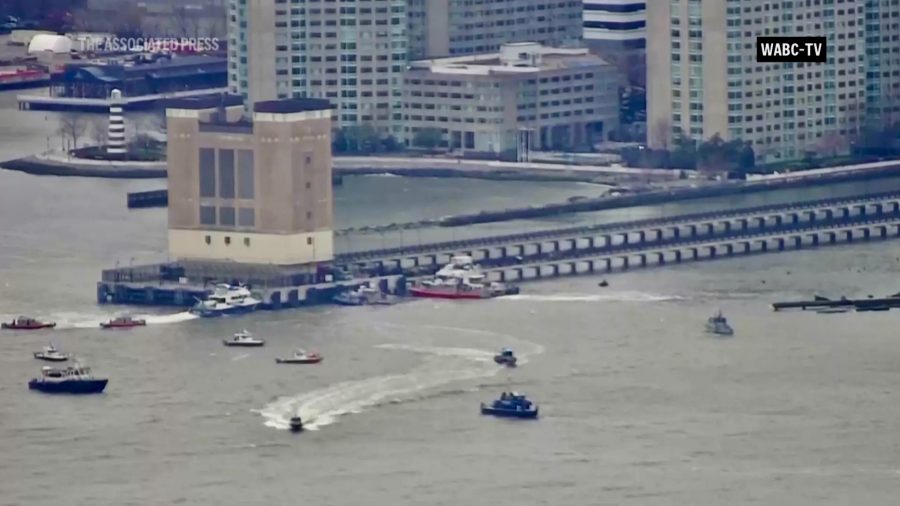 El vídeo del accidente mostró partes del avión cayendo a través del aire hacia el agua cerca de la costa de Jersey City, Nueva Jersey.