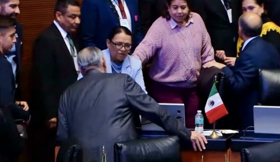 La secretaria optó por no saludar de esa manera al coordinador de Morena, mientras sí se despidió con un abrazo y un beso de los senadores de oposición Manuel Añorve, coordinador del PRI, y Amalia García, de Movimiento Ciudadano.