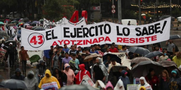 México, 24 de enero de 2024.- Los ocho militares acusados en el caso Ayotzinapa, a quienes se les revocó la prisión preventiva el sábado, salieron la madrugada de este miércoles de la prisión del Campo Militar 1-A para llevar su proceso penal por el delito de desaparición forzada en libertad, informaron fuentes militares.