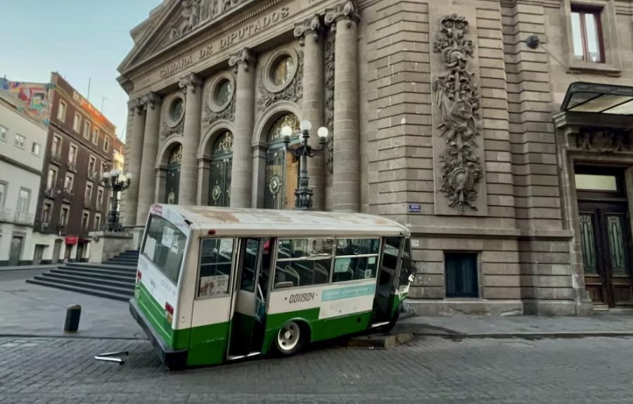 México, 17 de marzo.- Una unidad del transporte público chocó contra una camioneta y se estrelló contra las escalinatas del Congreso de la Ciudad de México.